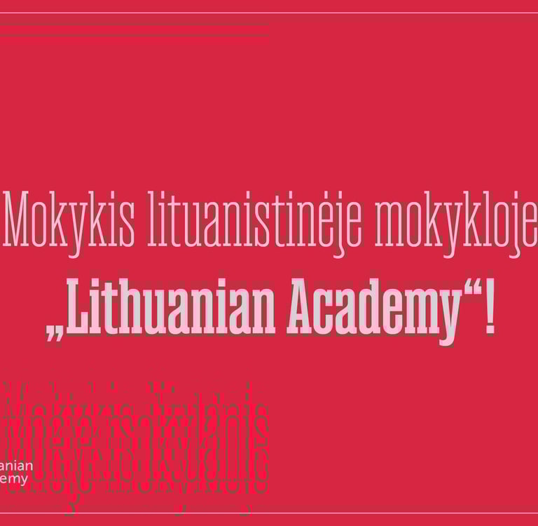 Lithuanian Academy – tai lituanistinė mokykla, skirta užsienyje gyvenantiems lietuviams. Mūsų tikslas – išsaugoti lietuviškas tradicijas ir kultūrą, ugdyti jaunąją kartą per įvairias programas, tokias kaip darželis-mokykla ir stovyklos Lietuvoje. Prisijunkite prie mūsų bendruomenės!